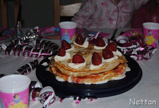 Jag gjorde faktiskt bara en men jag serverade vanliga pannkakor vid sidan om det var någon som ville ha det efter att tårtan var slut. Och det var det naturligtvis.